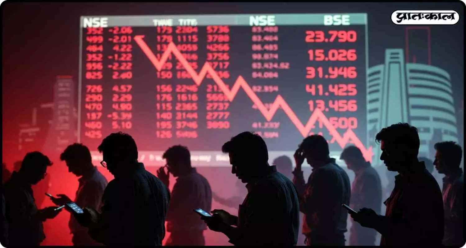 भारतीय शेयर बाजार में आज तेज गिरावट देखने को मिली, जहां निफ्टी 221 अंक और सेंसेक्स 637 अंक फिसल गया। इस गिरावट से निवेशकों में सतर्कता बढ़ी है। वैश्विक संकेत, मुनाफावसूली और बढ़ते जोखिम बाजार की मौजूदा कमजोरी के प्रमुख कारण बने।