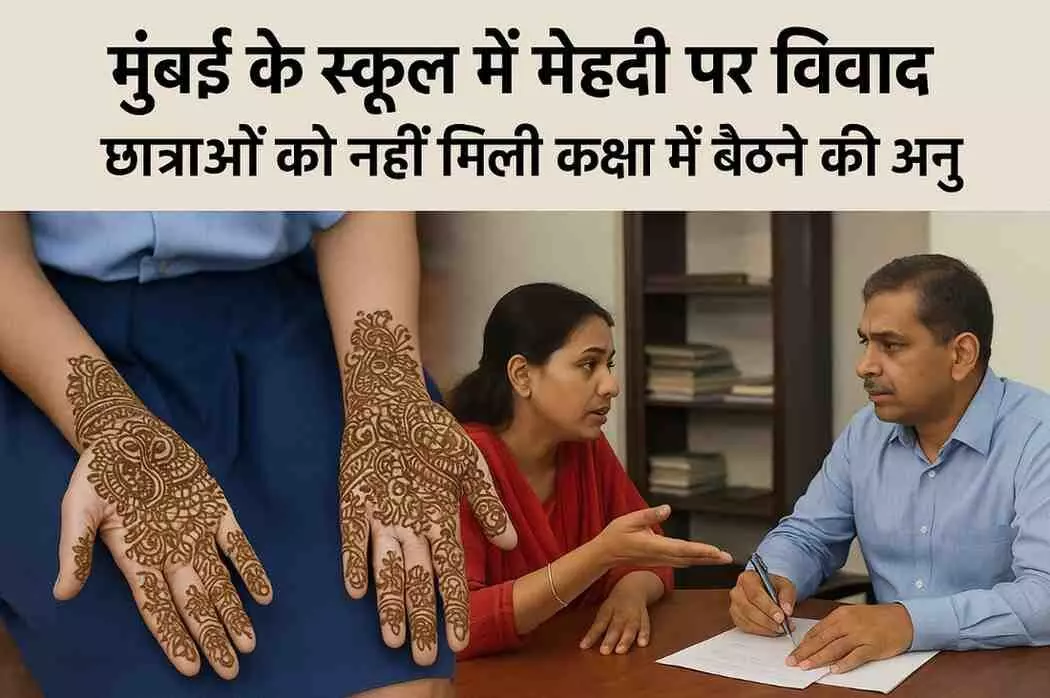 मुंबई के चेंबूर स्थित सेंट एंथनी गर्ल्स हाई स्कूल में मेहंदी लगाने को लेकर विवाद खड़ा हो गया है। छात्राओं को कक्षा में बैठने से रोकने पर अभिभावकों ने शिक्षा विभाग में शिकायत दर्ज कराई। विभाग ने स्कूल को नोटिस जारी कर जवाब मांगा है और मामले की जांच शुरू कर दी है।
