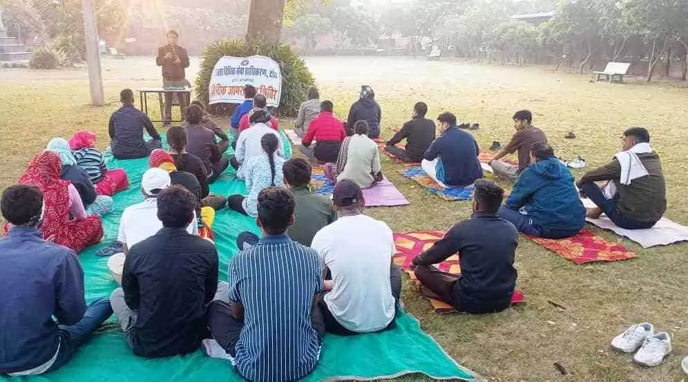 कृष्ण क्रीड़ांगन में गूंजे प्राणायाम के स्वर, छात्र बने योगाभ्यास के साक्षी