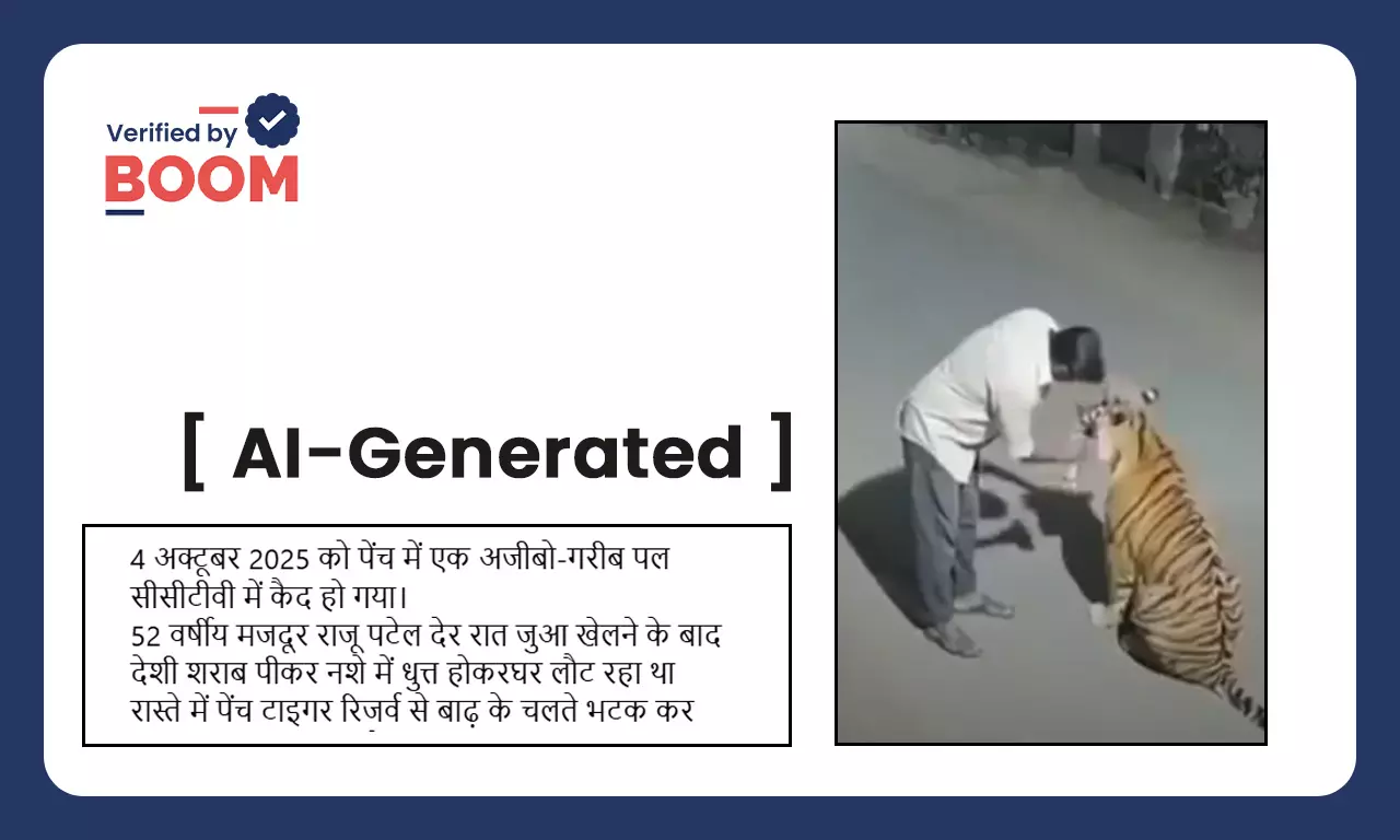 व्यक्ति के बाघ को दुलारने की घटना के दावे से वायरल वीडियो AI Generated है