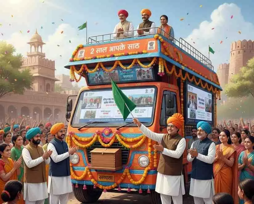 भाजपा सरकार के दो वर्ष पूर्ण होने पर डीग में प्रचार रथ दौरा, जनता को उपलब्धियों की जानकारी