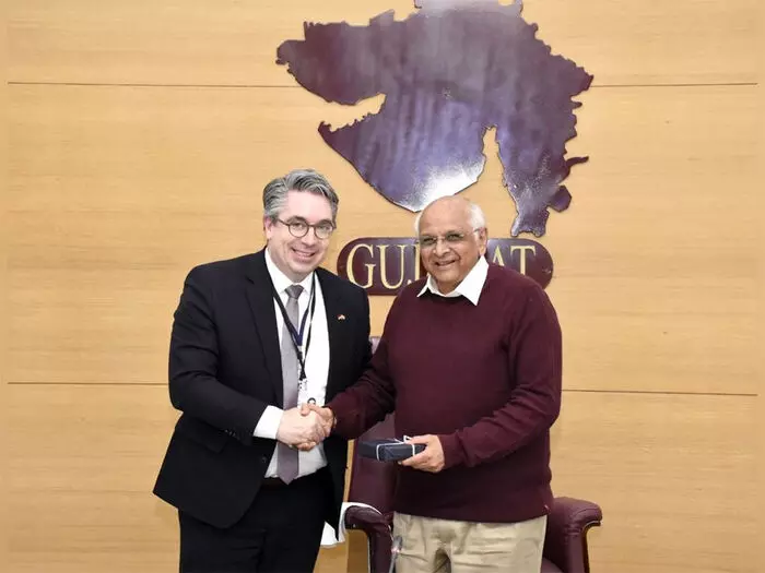गुजरात के गांधीनगर में मुख्यमंत्री भूपेंद्र पटेल और जर्मनी के स्टेट सेक्रेटरी स्टीफन रूएनहोफ की लीडरशिप में जर्मन बिजनेस डेलीगेशन के बीच एक हाई-लेवल मीटिंग हुई