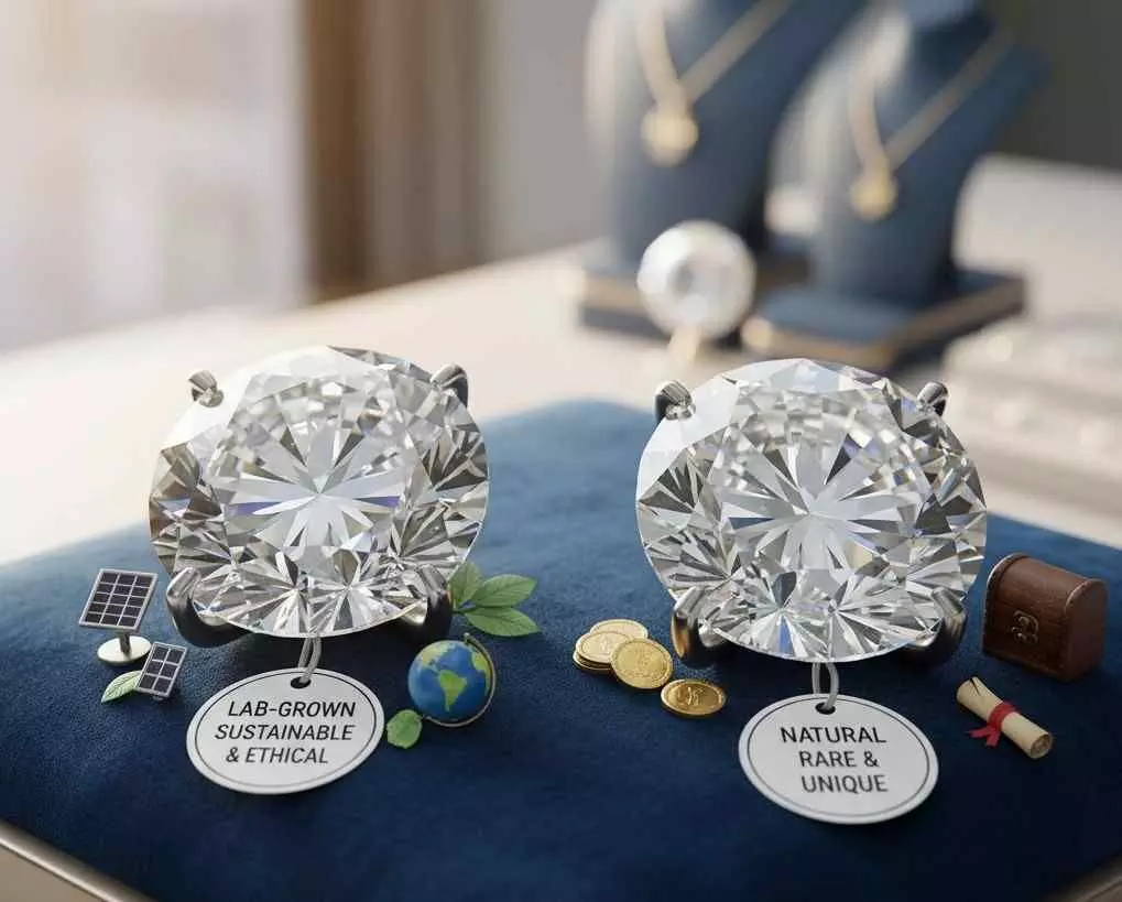 लैब-ग्रोन हीरे अब पर्यावरणीय, किफायती और नैतिक विकल्प के रूप में उभर रहे हैं, जो प्राकृतिक हीरों जैसी गुणवत्ता और चमक प्रदान करते हैं। फिर भी प्राकृतिक हीरे अपनी दुर्लभता, भावनात्मक मूल्य और निवेश क्षमता के कारण खास बने हैं।