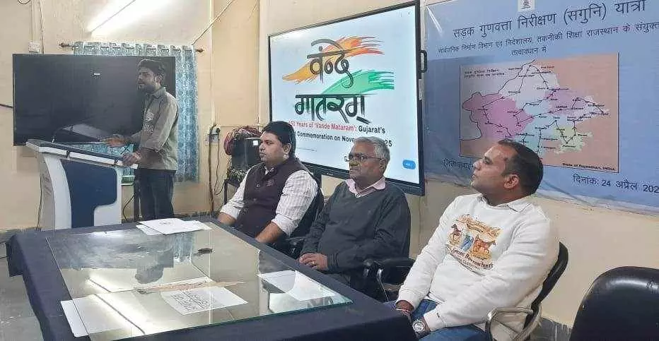 राजकीय पॉलिटेक्निक महाविद्यालय सवाई माधोपुर में “वन्दे मातरम्” के 150 वर्ष पूर्ण होने पर भव्य समारोह आयोजित हुआ। प्राचार्य मनोज कुमार सोनी ने राष्ट्रीय गीत के ऐतिहासिक और सांस्कृतिक महत्व पर प्रकाश डाला। कार्यक्रम में छात्रों ने देशभक्ति से ओतप्रोत प्रस्तुतियाँ दीं और समारोह का समापन राष्ट्रगान के साथ हुआ।