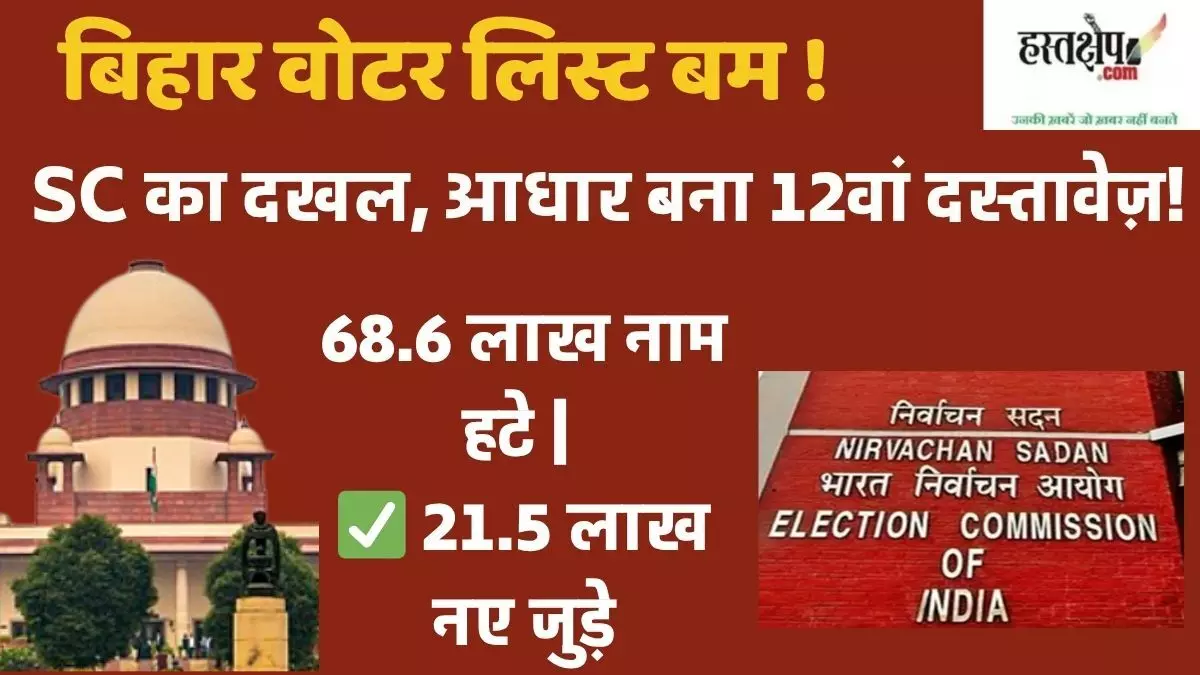 बिहार में चुनाव आयोग के स्पेशल रिव्यू से 68.6 लाख नाम हटे, 21.5 लाख नए जुड़े। सुप्रीम कोर्ट ने आधार को 12वें दस्तावेज़ के रूप में मान्यता दी..