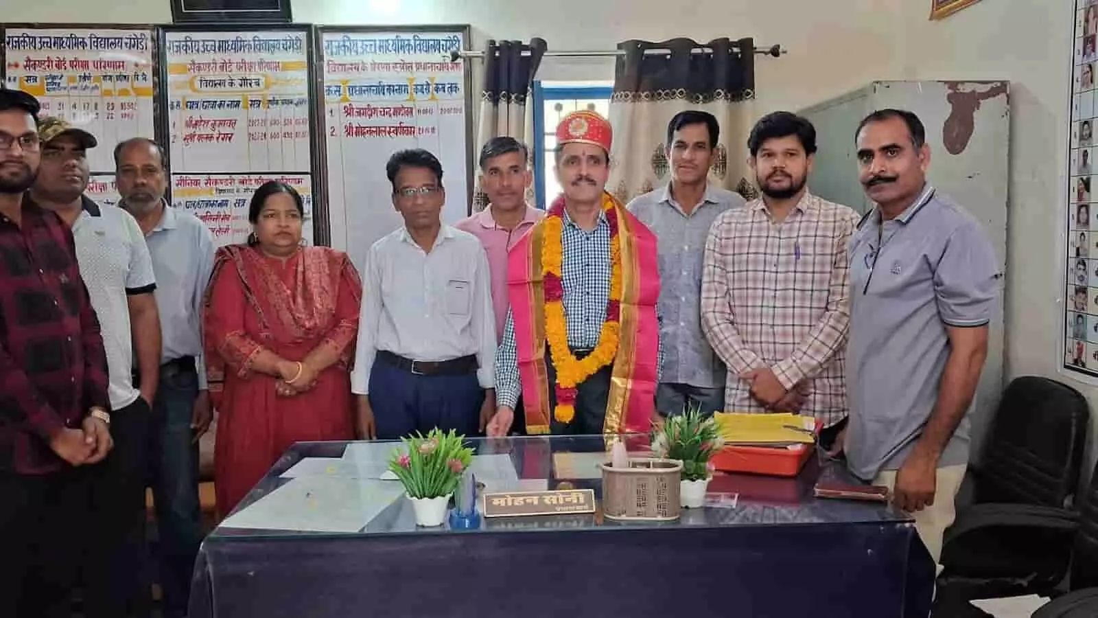 चंगेड़ी: यूके की यात्रा से लौटे प्रधानाचार्य मोहनलाल स्वर्णकार का स्वागत