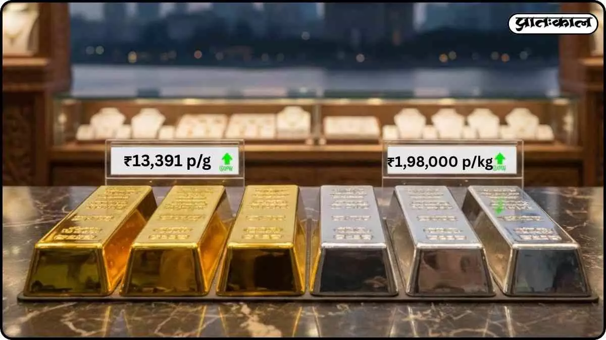 मुंबई के सर्राफा बाजार में आज सोना और चांदी की कीमतों में कोई बदलाव नहीं हुआ। 24 कैरेट सोना ₹13,391 प्रति ग्राम और चांदी ₹1,98,000 प्रति किलो पर स्थिर रही। बाजार में यह स्थिरता निवेशकों और खरीदारों के लिए अहम संकेत मानी जा रही है।