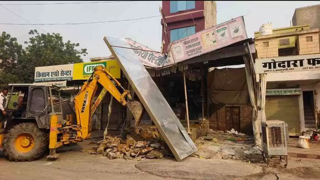 नोहर अनाज मंडी में बुधवार को प्रशासन ने बड़ी कार्रवाई करते हुए दुकानों के आगे बने टिन शेड, चबूतरे और अवैध निर्माण ढहा दिए। लंबे समय से चल रही अतिक्रमण की समस्या से किसानों को मिली राहत। तहसीलदार व मंडी सचिव की मौजूदगी में चली यह कार्यवाही प्रशासन के सख्त रुख की मिसाल बनी।
