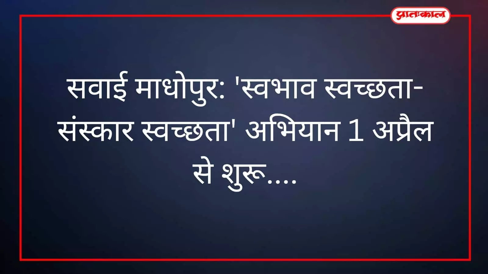 सवाई माधोपुर: 'स्वभाव स्वच्छता-संस्कार स्वच्छता' अभियान 1 अप्रैल से शुरू