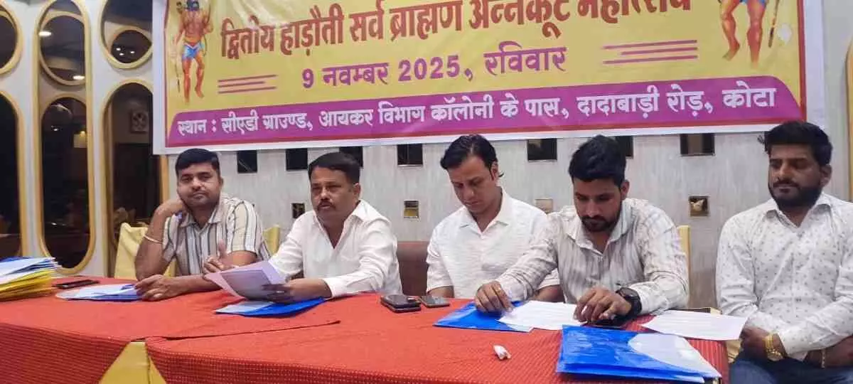 हाड़ौती में 9 नवम्बर को हाड़ौती सर्व ब्राह्मण समाज अन्नकूट महोत्सव समिति, कोटा के तत्वावधान में द्वितीय विशाल अन्नकूट महोत्सव का भव्य आयोजन होगा। लोकसभा अध्यक्ष ओम बिरला रहेंगे मुख्य अतिथि, जबकि दिल्ली का चिराग ग्रुप महारास व भजन संध्या प्रस्तुत करेगा। संत-महंतों और हजारों ब्राह्मण बंधुओं की उपस्थिति में यह आयोजन भक्ति, संस्कृति और एकता का प्रतीक बनेगा।