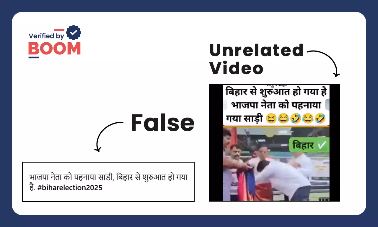बिहार में भाजपा नेता को साड़ी पहनाने के गलत दावे से महाराष्ट्र का वीडियो वायरल