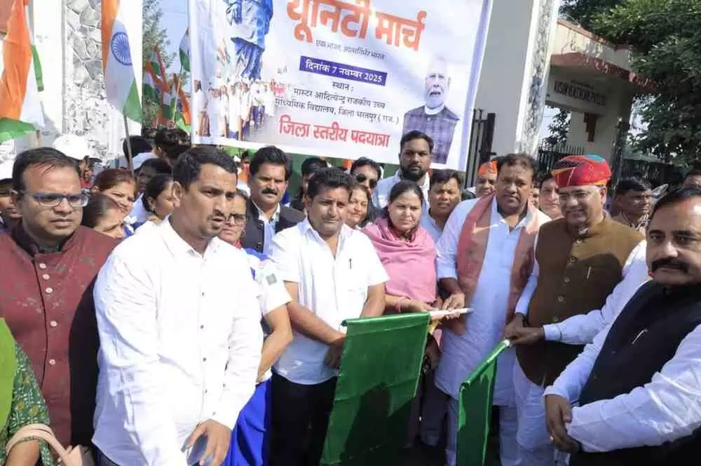 लौहपुरुष सरदार पटेल की 150वीं जयंती पर निकली “एकता पदयात्रा” — देशभक्ति नारों से गूंज उठा भरतपुर