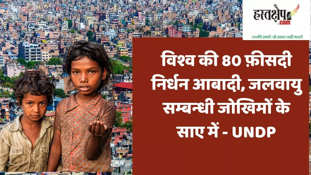 UNDP की नई रिपोर्ट के अनुसार, दुनिया की 80% निर्धन आबादी अत्यधिक गर्मी, बाढ़, सूखे और वायु प्रदूषण जैसे जलवायु जोखिमों के बीच जीवन बिता रही है। अध्ययन बताता है कि जलवायु संकट वैश्विक निर्धनता को और गहराई से प्रभावित कर रहा है