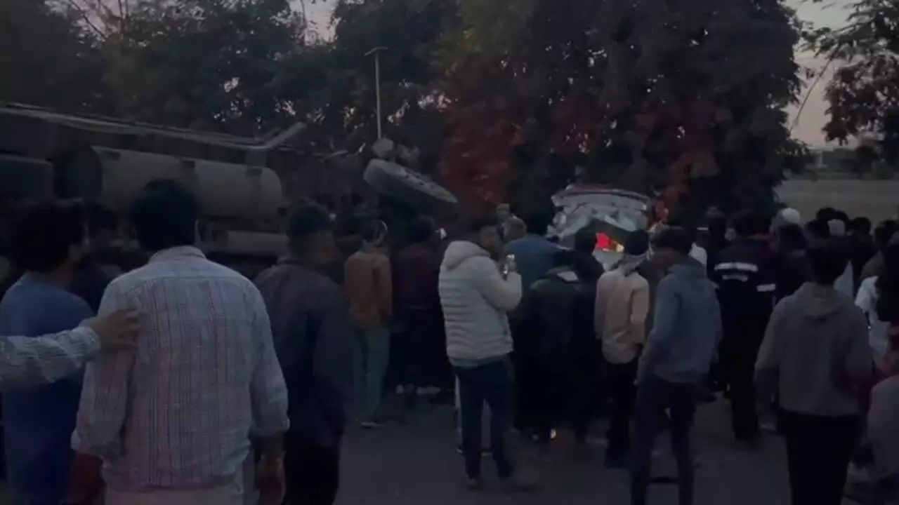 गुजरात के बनासकांठा में आबू-पालनपुर हाईवे पर शनिवार शाम एक भीषण सड़क हादसा हुआ, जहां डिवाइडर लांघकर आए एक ट्रक ने SUV को कुचल दिया। इस दर्दनाक घटना में राजस्थान के 6 लोगों की मौत हो गई और 3 गंभीर रूप से घायल हैं। पूरी खबर पढ़ें: कैसे एक बेकाबू ट्रक ने इलाज के लिए जा रहे परिवार की खुशियां छीन लीं और अब पुलिस फरार ड्राइवर की तलाश में क्या कदम उठा रही है।
