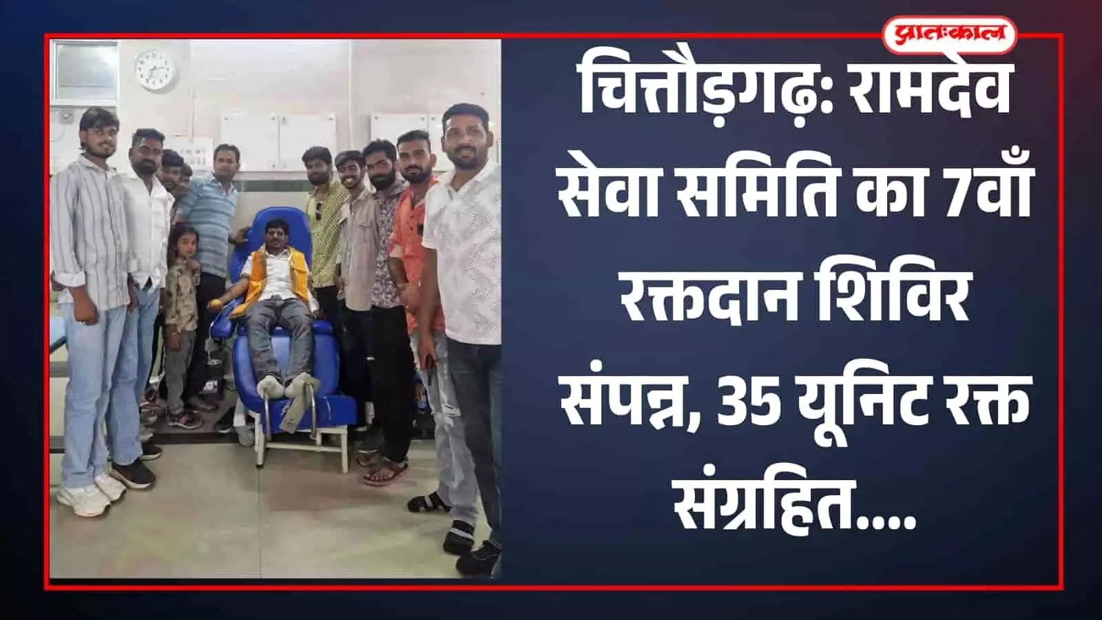 चित्तौड़गढ़: रामदेव सेवा समिति का 7वाँ रक्तदान शिविर संपन्न, 35 यूनिट रक्त संग्रहित
