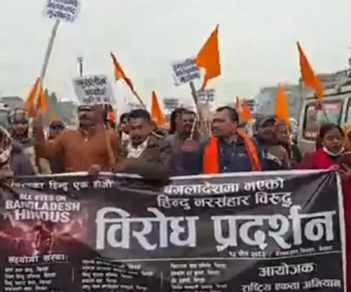 बांग्लादेश में हिंदू पुरुषों की बेरहम हत्या के विरोध में शुक्रवार और शनिवार को नेपाल के बीरगंज, जनकपुरधाम और गोलबाजार जैसे बड़े शहरों में प्रदर्शन किया गया