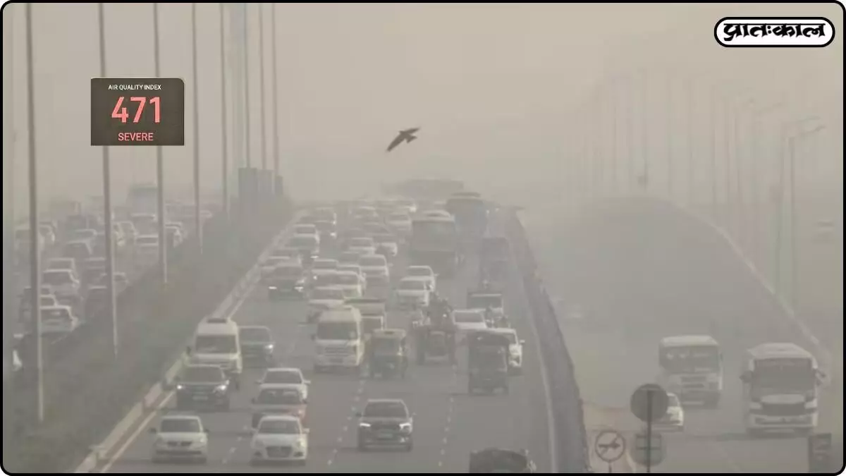 दिल्ली में जहरीली धुंध का असर बढ़ा, AQI 471 पर पहुंचा, स्कूलों में ऑनलाइन कक्षाएं और निर्माण कार्यों पर रोक लागू। अधिकारियों ने निवासियों को घर में रहने और मास्क पहनने की चेतावनी दी, प्रदूषण स्वास्थ्य के लिए गंभीर खतरा बन गया है।