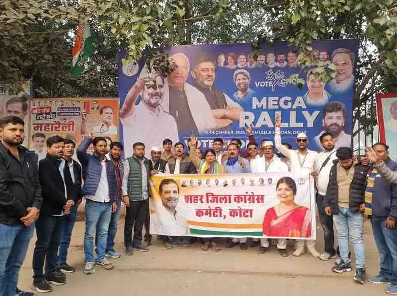 दिल्ली में आयोजित कांग्रेस की महारैली में कोटा से सैकड़ों कार्यकर्ताओं की भागीदारी रही। जिला अध्यक्ष राखी गौतम ने वोट चोरी के खिलाफ संघर्ष को जनता की लड़ाई बताते हुए लोकतंत्र की रक्षा के लिए एकजुट होने का आह्वान किया। रैली में भाजपा सरकार की नीतियों के खिलाफ जोरदार नारेबाजी हुई।
