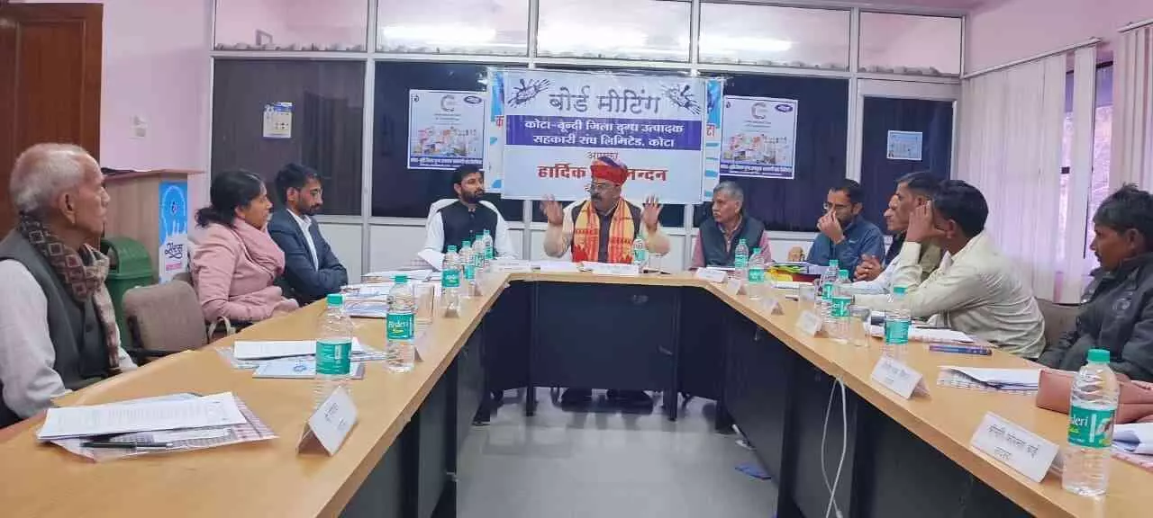 कोटा-बूंदी दुग्ध संघ की बोर्ड बैठक में चेयरमैन चैनसिंह राठौड़ ने ऐतिहासिक निर्णय लेते हुए जल्द ही 'सरस जल' लॉन्च करने का ऐलान किया है। बैठक में रोशन लाल जाट और रासबिहारी सैन को नया संचालक नियुक्त किया गया, जिससे बोर्ड की ताकत 12 सदस्यों की हो गई है। साथ ही 14 नई दुग्ध समितियों के गठन से किसानों को सीधा लाभ मिलेगा। जानिए प्रबंध निदेशक दिलखुश मीणा और अन्य सदस्यों की मौजूदगी में हुए 12 अहम फैसलों की पूरी जानकारी।