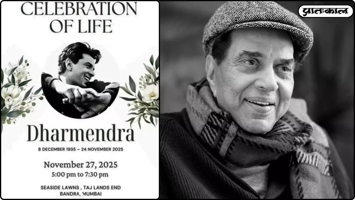 सुपरस्टार धर्मेंद्र के निधन के बाद आज गुरुवार शाम उनके लिए प्रेयर मीट का आयोजन किया जाएगा। यह प्रेयर मीट बांद्रा में होगी। IANS की रिपोर्ट के मुताबिक, सोशल मीडिया पर इस कार्यक्रम का लेटर वायरल हो रहा है, जिसमें प्रेयर मीट की जगह शीर्षक लिखा गया है - सेलिब्रेशन ऑफ लाइफ। लेटर में आगे लिखा गया है - धर्मेंद्र 8 दिसंबर 1935 – 24 नवंबर 2025, 27 नवंबर 2025, शाम 5:00 बजे से रात 7:30 बजे तक, इसके बाद कार्यक्रम स्थल (सीसाइड लॉन्स, ताज लैंड्स एंड, बांद्रा, मुंबई) का पता दिया गया है। रिपोर्ट्स के अनुसार, सिंगर सोनू निगम इस मौके पर धर्मेंद्र के यादगार गीत गाकर उन्हें श्रद्धांजलि देंगे। दिग्गज अभिनेता धर्मेंद्र का 24 नवंबर को 89 वर्ष की उम्र में निधन हो गया, जिसके बाद बॉलीवुड इंडस्ट्री दुखी है। ही-मैन को श्रद्धांजलि देने के लिए रणबीर कपूर, आलिया भट्ट, अजय देवगन समेत कई सितारे देओल परिवार के घर पहुंच रहे हैं। लगातार बढ़ रही भीड़ को देखते हुए बुधवार सुबह उनके घर की सुरक्षा बढ़ा दी गई थी। दिवंगत एक्टर धर्मेंद्र के निधन के बाद कई दिग्गज और एक्टर्स उनके परिवार से मिलने उनके घर पहुंचे। धर्मेंद्र के निधन पर सेलेब्स ने जताया दुख अमिताभ बच्चन ने शोले को-स्टार को याद कर भावुक होते हुए ऑफिशियल X अकाउंट (पहले ट्विटर) पर लिखा- एक और बहादुर महान शख्सियत हमें छोड़कर चली गई। उन्होंने यह मंच छोड़ दिया, पीछे एक ऐसी खामोशी छोड़कर गए हैं, जिसकी आवाज असहनीय है। धरम जी, वे महानता के प्रतीक थे, केवल अपने प्रसिद्ध व्यक्तित्व के कारण नहीं, बल्कि अपने विशाल हृदय और उसकी सादगी के लिए भी। वे पंजाब के जिस गांव से आए थे, उसकी मिट्टी की खुशबू अपने साथ लाए और अपने पूरे शानदार करियर के दौरान उस सादगी और स्वभाव को बरकरार रखा। उन्होंने आगे लिखा, फिल्म जगत में कई दशकों में बहुत कुछ बदला, लेकिन वे नहीं बदले। उनकी मुस्कान, उनका आकर्षण और उनकी आत्मीयता जो भी उनके पास आया, वह उससे प्रभावित हुए बिना नहीं रह सका। यह इस पेशे में बहुत दुर्लभ है। हमारे आसपास की हवा अब सूनी-सी लगती है। एक ऐसा खालीपन पैदा हो गया है, जो हमेशा खाली ही रहेगा। प्रार्थनाएं। रजनीकांत ने एक्स पर धर्मेंद्र को श्रद्धांजलि देते हुए लिखा- अलविदा मेरे दोस्त। मैं हमेशा तुम्हारे सुनहरे दिल और हमारे साथ बिताए पलों को याद रखूंगा। धरम जी, आपकी आत्मा को शांति मिले। परिवार के प्रति गहरी संवेदनाएं। शत्रुघ्न सिन्हा ने लिखा, हमारे परिवार के प्रिय मित्र, बड़े भाई और लोगों के हीरो धर्मेंद्र जी के निधन से दिल टूट गया है। वे सादगी, विनम्रता और दया के प्रतीक थे। फिल्म इंडस्ट्री के एक युग का अंत हो गया है। यह अपूरणीय क्षति है। परिवार, दोस्तों और प्रशंसकों को इस दुख की घड़ी में शक्ति मिले। कमल हासन ने भी दुख जताते हुए 