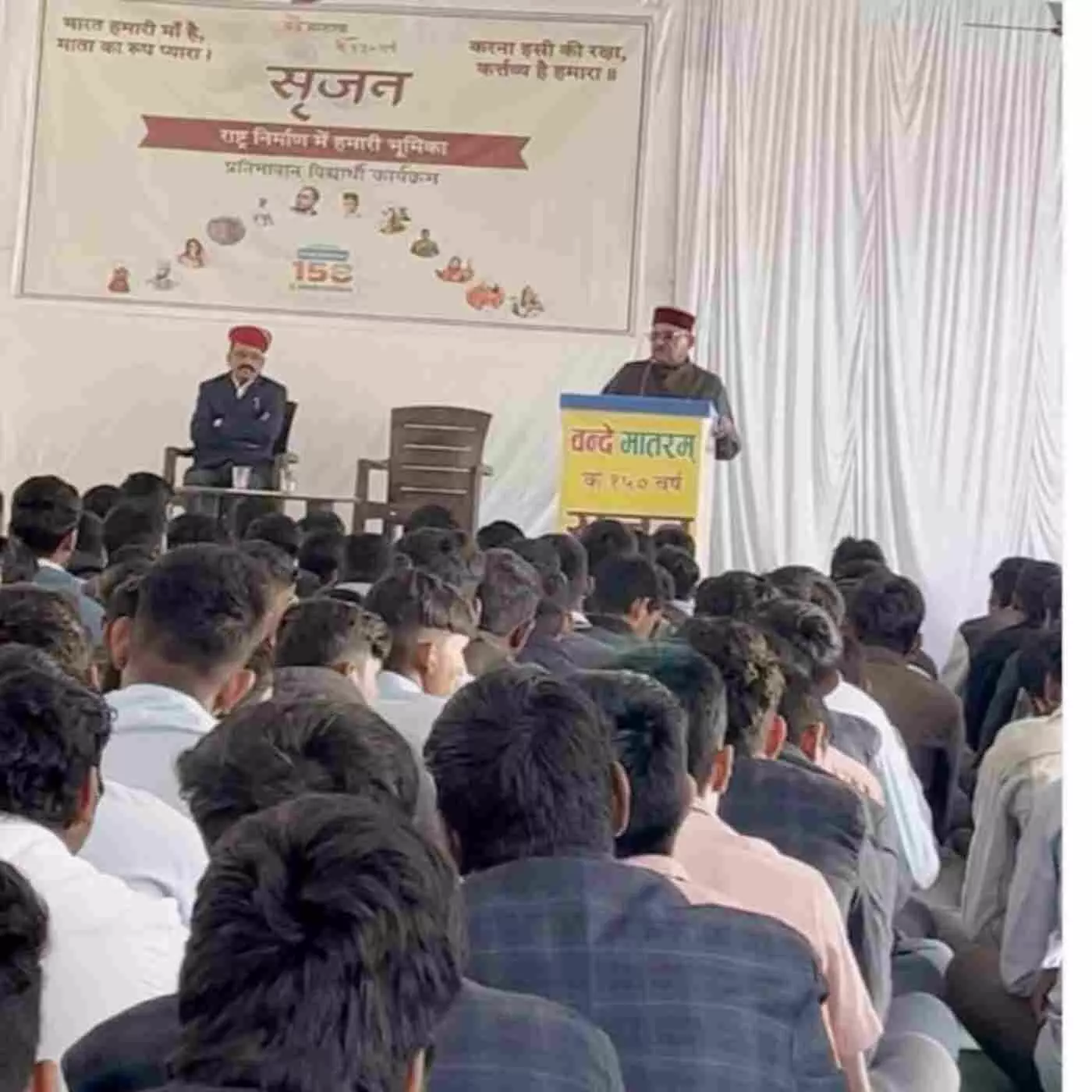 आमेट के 'सृजन' कार्यक्रम में आरएसएस क्षेत्र प्रचारक निंबाराम ने विद्यार्थियों को चरित्र निर्माण का मंत्र दिया। राजकीय उच्च माध्यमिक विद्यालय में आयोजित इस कार्यक्रम में ब्लॉक शिक्षा अधिकारी नारायण सिंह राव ने पन्नाधाय और वीर पत्ता के त्याग को याद किया। 242 मेधावी छात्रों ने भाग लिया, जहाँ व्यक्ति निर्माण से राष्ट्र निर्माण के संकल्प पर जोर दिया गया।