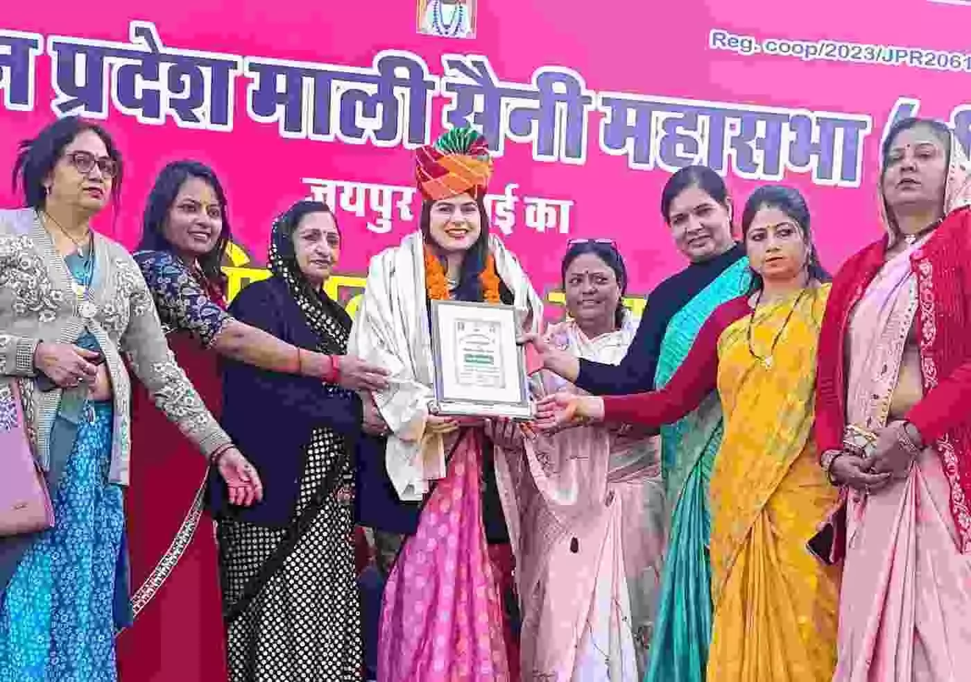 जयपुर के हीरा वैली रिसोर्ट में राजस्थान प्रदेश माली सैनी महासभा द्वारा आयोजित भव्य स्नेह मिलन समारोह में 11 नवनियुक्त RAS अधिकारियों और भीलवाड़ा की फैशन आइकॉन जया चौहान का विशेष सम्मान किया गया। प्रदेश अध्यक्ष ताराचंद गहलोत की अध्यक्षता में हुए इस कार्यक्रम में समाज की प्रतिभाओं, नवनिर्वाचित पदाधिकारियों और भामाशाहों को सम्मानित कर सामाजिक एकजुटता का संदेश दिया गया।