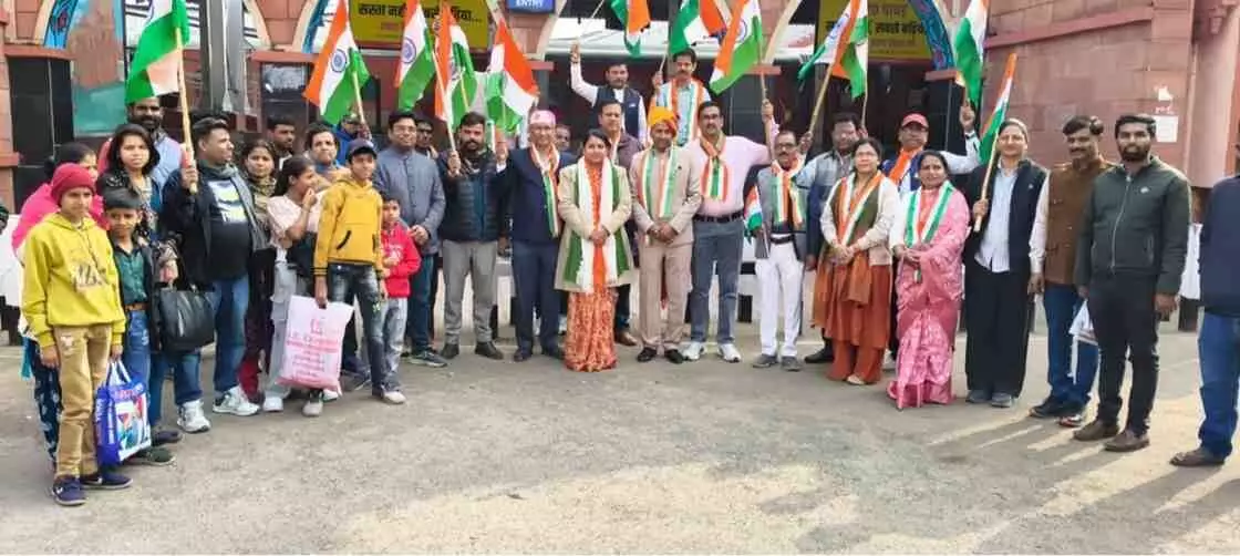 चित्तौड़गढ़ में गणतंत्र दिवस पर जिला कलक्टर के निर्देशानुसार 'बाल विवाह मुक्त भारत' अभियान के तहत रेलवे स्टेशन पर भव्य तिरंगा यात्रा निकाली गई। जिला प्रशासन, रेलवे और पुलिस विभागों ने संयुक्त रूप से यात्रियों को बाल विवाह रोकने की शपथ दिलाई और सामूहिक राष्ट्रगान के साथ सामाजिक कुरीतियों को मिटाने का संकल्प लिया। जानिए कैसे चित्तौड़गढ़ बना बाल अधिकार जागरूकता का केंद्र।