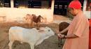 CM योगी की गोसेवा, गोवंश को गुड़-रोटी, मोर को दाना खिलाया
