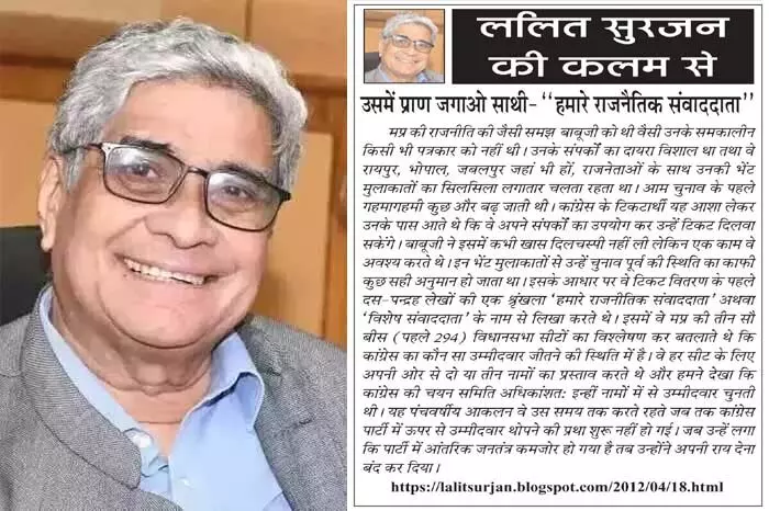 ललित सुरजन की कलम से-उसमें प्राण जगाओ साथी- ''हमारे राजनैतिक संवाददाता''