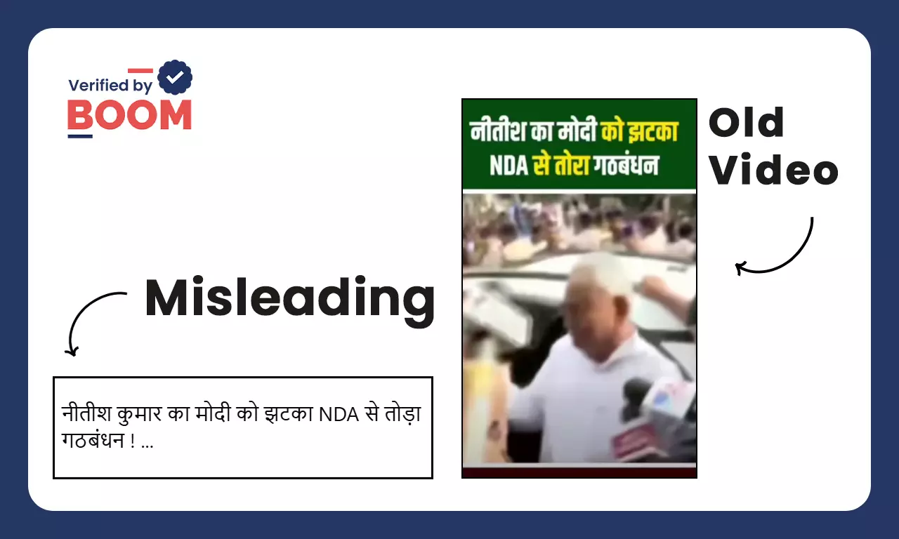 बूम ने पाया कि सीएम नीतीश कुमार का यह वीडियो 2022 का है, जब उन्होंने बीजेपी का दामन छोड़कर महागठबंधन का दामन थाम लिया था.