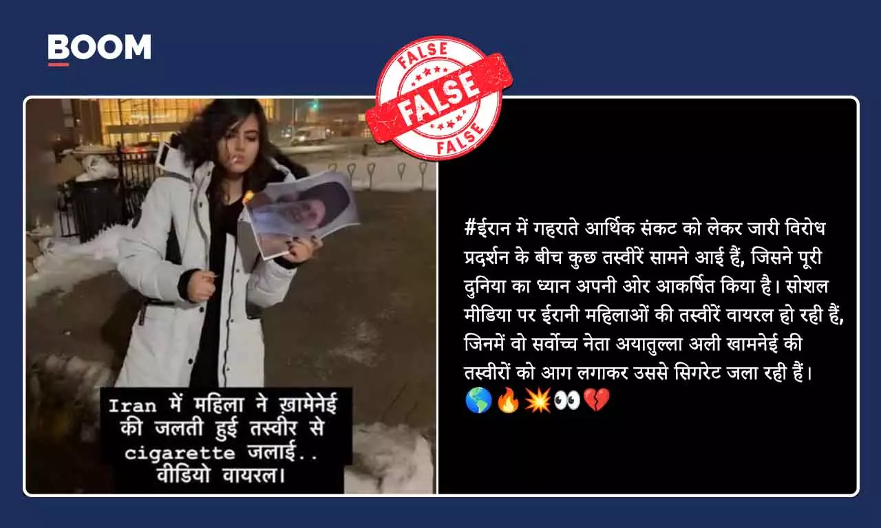 खामेनेई की तस्वीर जलाकर सिगरेट सुलगाती महिला की यह तस्वीर ईरान से नहीं है