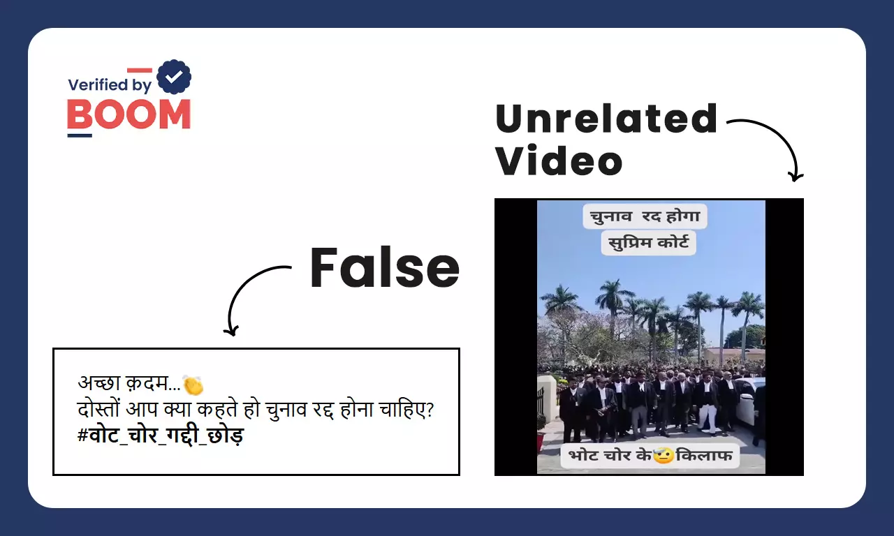 बूम ने जांच में पाया कि वायरल वीडियो इलाहाबाद उच्च न्यायालय में जुलाई 2025 में संपन्न बार एसोसिएशन चुनाव के प्रचार से जुड़ा हुआ है.