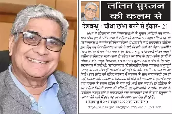 ललित सुरजन की कलम से - देशबन्धु : चौथा खंभा बनने से इंकार- 21