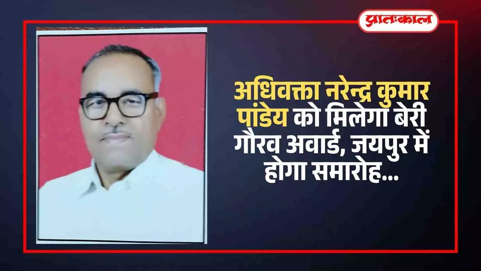 अधिवक्ता नरेन्द्र कुमार पांडेय को मिलेगा बेरी गौरव अवार्ड, जयपुर में होगा समारोह