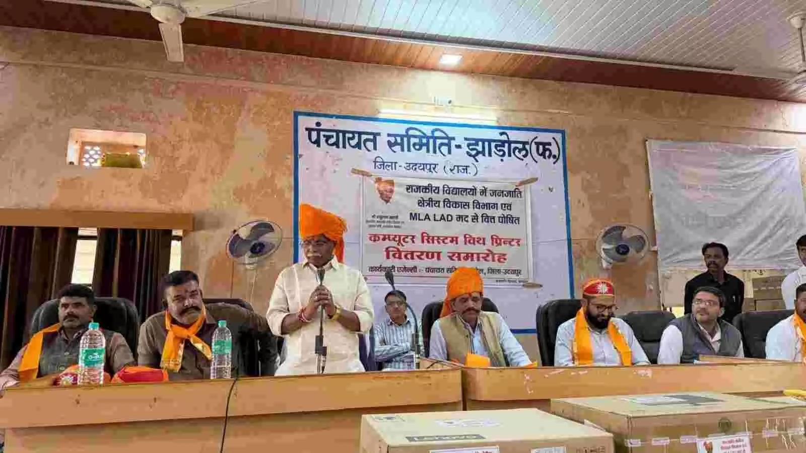 बाबूलाल खराड़ी ने झाडोल के सरकारी स्कूलों में कंप्यूटर और प्रिंटर वितरित किए