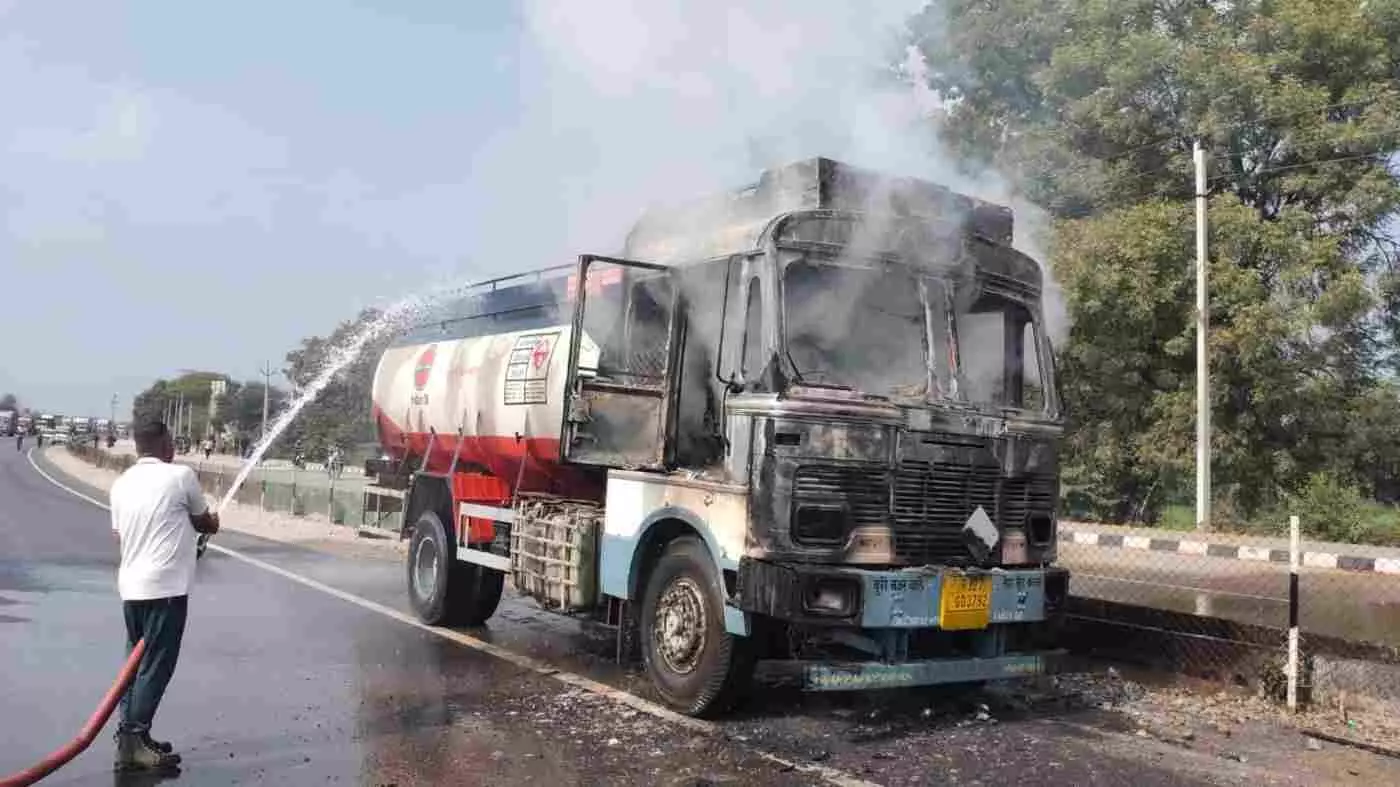 उदयपुर: घणोली के पास खाली पेट्रोल टैंकर में शॉर्ट सर्किट से भीषण आग, चालक-खलासी ने कूदकर बचाई जान