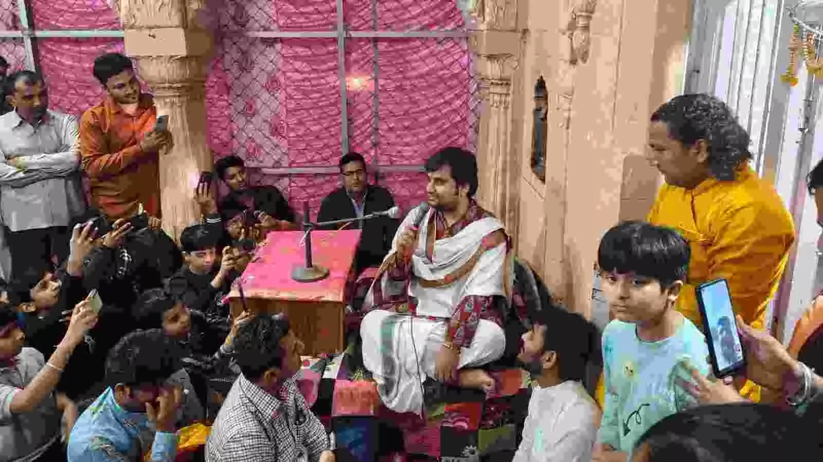 कथावाचक इन्द्रेश उपाध्याय ने डीग के लक्ष्मण मंदिर में किए दर्शन