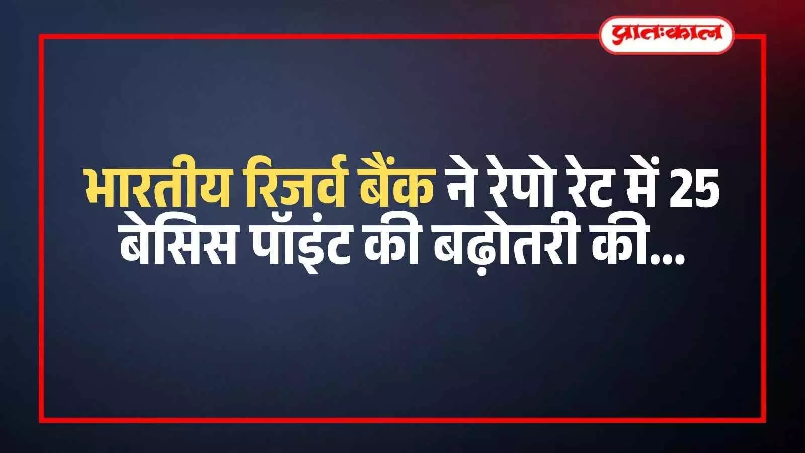 भारतीय रिजर्व बैंक ने रेपो रेट में 25 बेसिस पॉइंट की बढ़ोतरी की