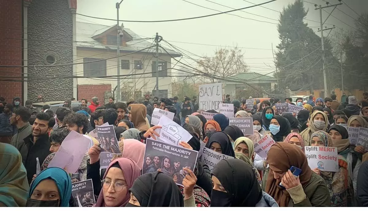 जम्मू-कश्मीर के मुख्यमंत्री उमर अब्दुल्ला के आवास के बाहर आरक्षण नीति के खिलाफ सोमवार को कई राजनीतिक नेताओं और बड़ी संख्या में छात्रों ने प्रदर्शन किया। उपराज्यपाल-प्रशासन ने आरक्षण नीति को इस साल की शुरुआत में पेश किया था