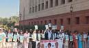 कांग्रेस सांसदों ने संसद परिसर में हरदीप सिंह पुरी के इस्तीफे की मांग को लेकर किया विरोध प्रदर्शन