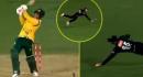 Nicky Kelly Catch Video: न्यूजीलैंड के 32 साल के बल्लेबाज़ निक केली (Nicky Kelly) बुधवार, 25 मार्च को क्राइस्टचर्च टी20 (NZ vs SA 5th T20) में अपने बैट से कुछ खास नहीं कर पाए और 18 गेंदों पर सिर्फ 14 रन बनाकर आउट हुए। हालांकि इसी बीच उन्होंने न्यूजीलैंड की फील्डिंग के दौरानएक बेहद ही हैरतअंगेज कैच पकड़ा जिसका वीडियो सोशल मीडिया पर जमकर वायरल हो रहा है। जी हां, ऐसा ही हुआ। दरअसल, निक केली का ये कैच साउथ अफ्रीका की इनिंग के 16वें ओवर में देखने को मिला। न्यूजीलैंड के लिए ये ओवर तेज गेंदबाज़ बेन सियर्स करने आए थे जिनकी पहली ही गेंद पर बाएं हाथ के बल्लेबाज़ रुबिन हरमन ने एक मिस टाइम पुल शॉट खेलकर गेंद को मिड ऑन की तरफ हवा में उड़ा दिया। ये बॉल रुबिन हरमन के बैट से टकराने के बाद हवा में काफी ऊंची उठ गई थी जिसे देखकर मिड ऑफ की पॉजिशन पर तैनात 32 साल के खिलाड़ी निक केली की आंखें चमक गई। इसके बाद होना क्या था, वो चीते की रफ्तार से बॉल की तरफ दौड़े और उन्होंने आखिरी में एक गज़ब की डाइव लगाकर एक हाथ से गेंद को लपका। FanCode ने अपने आधिकारिक एक्स अकाउंट से इस घटना का वीडियो साझा किया है जिसे आप नीचे देख सकते हो। गौरतलब है कि भले ही निक केली ने अपने डेब्यू टी20 सीरीज में एक बेहद ही गज़ब का कैच लपका जो कि उन्हें ताउम्र याद रहेगा, लेकिन वो अपनी बैटिंग से बिल्कुल भी प्रभावित नहीं कर पाए। आलम ये रहा है कि उन्होंने साउथ अफ्रीका के सामने टी20 सीरीज के सभी पांचमुकाबले खेले जिसमें वो एक-एक रन के लिए संघर्ष करते नज़र आए और 5 इनिंग में 56 बॉल खेलकर 53 रन ही जोड़ सके। ऐसे में अब ये देखना काफी दिलचस्प रहेगा कि उन्हें न्यूजीलैंड की टी20 टीम में आगे मौका मिलता है या नहीं। HOW DID HE CATCH THAT?! Watch South Africa tour of New Zealand LIVE on FanCode! #NZvSA pic.twitter.com/8iWNcfLirj — FanCode (@FanCode) March 25, 2026 साउथ अफ्रीका ने 33 रनों से जीता मैच: टी20 सीरीज का पांचवां मुकाबला क्राइस्टचर्च में खेला गया था जिसमें मेहमान टीम साउथ अफ्रीका ने अपने 24 साल के बल्लेबाज़ कॉनर एस्टरहुइज़न की 33 गेंदों पर 75 रनों की तूफानी अर्धशतकीय पारी के दम पर 4 विकेट खोकर 187 रन बनाए। Also Read: LIVE Cricket Score इसके जवाब में न्यूजीलैंड की टीम 20 ओवर में 8 विकेट खोकर 154 रन ही जोड़ पाई और इस तरह साउथ अफ्रीका ने ये मुकाबला 33 रनों से जीता। बताते चलें कि इसी के साथ उन्होंने ये सीरीज 3-2 से जीतकर अपने नाम की है।