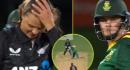 Kayle Reyneke Six Video: साउथ अफ्रीका महिला क्रिकेट टीम (South Africa Women Cricket Team) की 20 साल की ऑलराउंडर कायला रेनेके (Kayle Reyneke) ने रविवार, 29 मार्च को क्राइस्टचर्च के हेगले ओवल स्टेडियम में न्यूजीलैंड के खिलाफ पहले वनडे मुकाबले में 32 गेंदों पर नाबाद 42 रनों शानदार पारी खेली। गौरतलब है कि इस मुकाबले में उन्होंने न्यूजीलैंड की दिग्गज सुज़ी बेट्स (Suzie Bates) को आखिरी गेंद पर छक्का जड़कर अपनी टीम को बेहद ही रोमांचक अंदाज़ में जीत दिलाईजिसका वीडियो सोशल मीडिया पर जमकर वायरल हो रहा है। जी हां, ऐसा ही हुआ है। दरअसल, ये मुकाबला जीतने के लिए साउथ अफ्रीका को आखिरी ओवर से पूरे 14 रनों की दरकार थी। उनके आठ विकेट गिर चुके थे और अब 20 साल की कायला रेनेके के कंधों पर ही टीम को मैच जिताने की जिम्मेदारी थी। दूसरी तरफ न्यूजीलैंड के लिए ये ओवर बेहद ही अनुभवी खिलाड़ी सुज़ी बेट्स करने आईं थी, जिन्होंने साउथ अफ्रीका के लिए सबसे ज्यादा रन बनाने वाली खिलाड़ी एनेरी डर्कसन (93 गेंदों पर 72 रन) का विकेट चटकाया था। यहां कायला रेनेके पहली गेंद पर कुछ खास नहीं कर पाई और उन्हें सिर्फ एक सिंगल मिला। हालांकि राहत की बात ये रही है कि दूसरी तरफ से तुमी सेखुखुने ने कोई बॉल खराब नहीं की और अगली ही गेंद पर कायला रेनेके को एक रन लेकर स्ट्राइक दे दी। इसके बाद जो हुआ वो किसी करिश्मे से कम नहीं थी। गौर करें कि यहां 20 साल की कायला रेनेके ने सुज़ी बेट्स को तीसरी गेंद एक गज़ब का छक्का मारा और मुकाबले में साउथ अफ्रीका को वापस ले आईं। इसके बाद सुज़ी बेट्स ने भी अपने अनुभव का पूरा फायदा उठाया और अगली दो गेंद, एक के बाद एक डॉट करा दी। The Winning Moment! Kayla Reyneke carries #TheProteas over the line and is embraced by her teammates. #Unbreakable pic.twitter.com/UaeCFrFib2 — Proteas Women (@ProteasWomenCSA) March 29, 2026 कुल मिलाकर अब साउथ अफ्रीका को ये मुकाबला जीतने के लिए आखिरी गेंद पर पूरे छह रन की दरकार थी। ऐसे में सुज़ी बेट्स ने बल्लेबाज़ ने दूर गेंद फेंकने की कोशिश की, लेकिन कायला रेनेके ने उन्हें सफल नहीं होने दिया और घुटने पर बैठकर लंबा छक्का ठोक दिया। इस तरह साउथ अफ्रीका ने ये मैच जीता जिसका वीडियोआप नीचे देख सकते हो। Also Read: LIVE Cricket Score गौरतलब है कि इस मुकाबले में न्यूजीलैंड ने साउथ अफ्रीका को 269 रनों का लक्ष्य दिया था जिसे मेहमान टीम ने अपनी इनिंग की आखिरी गेंद पर हासिल किया और 2 विकेट से जीत दर्ज की। इसी के साथ साउथ अफ्रीका ने तीन मैचों की वनडे सीरीज में 1-0 की बढ़त बना ली है।