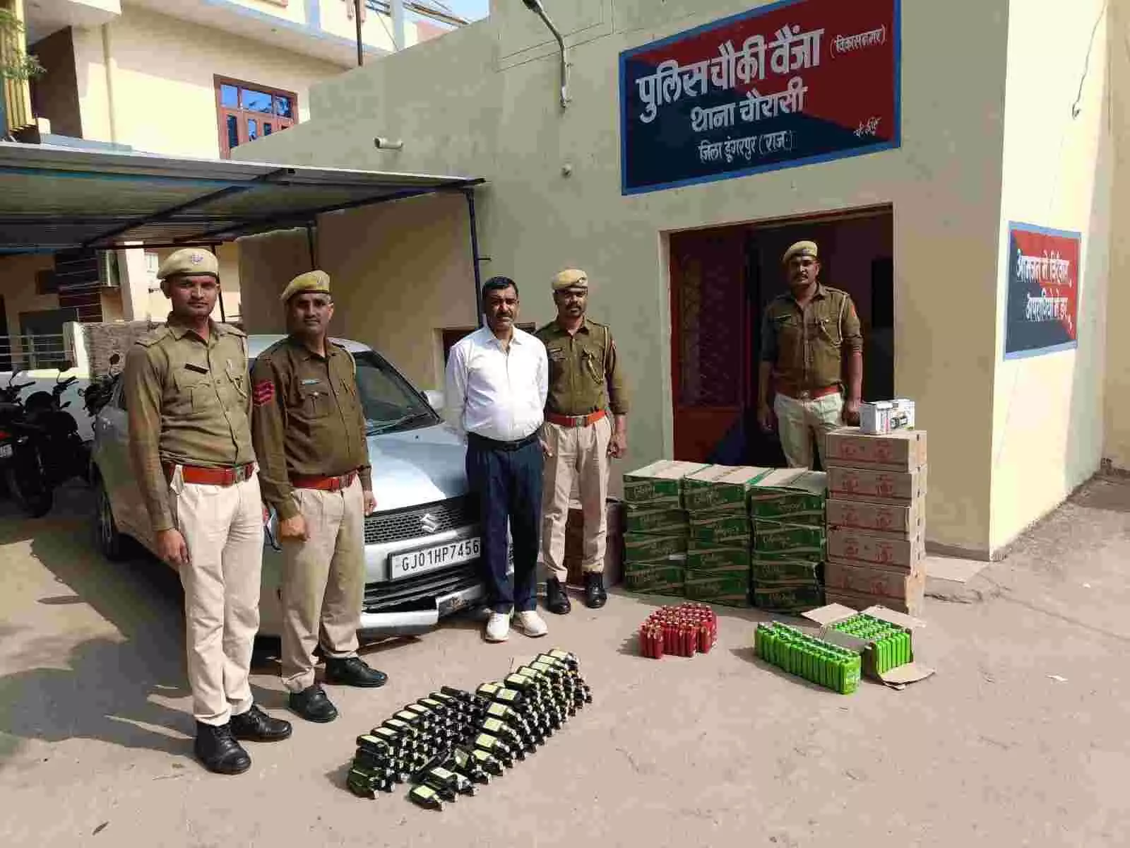 राजस्थान के डूंगरपुर में पुलिस ने अवैध शराब तस्करी के एक बड़े नेटवर्क का भंडाफोड़ किया है। चौरासी थाना पुलिस ने नाकाबंदी के दौरान एक गुजरात नंबर की कार की सीटों के नीचे छिपाई गई 2.50 लाख रुपए की अवैध शराब जब्त की है। इस मामले में बाड़मेर निवासी तस्कर धर्माराम को गिरफ्तार किया गया है, जो इस खेप को गुजरात सप्लाई करने जा रहा था। पुलिस की इस कार्रवाई से तस्करों में हड़कंप मच गया है।