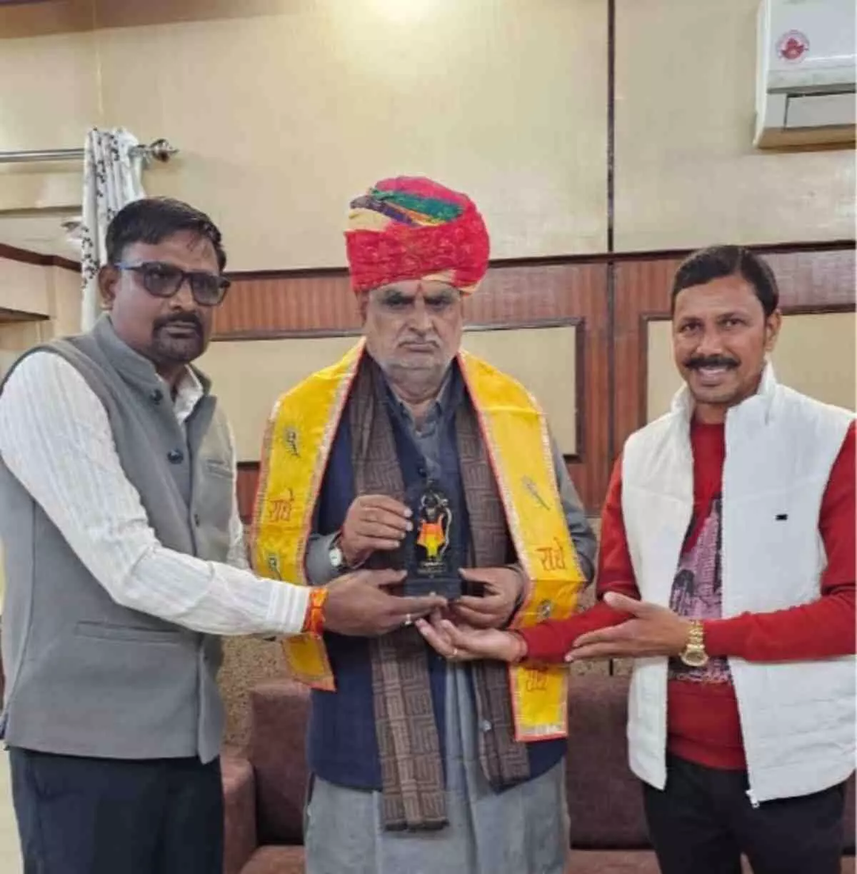 भीलवाड़ा आगमन पर यूडीएच मंत्री झाबर सिंह खर्रा का राजस्थान जन मंच ने भव्य स्वागत किया। भाजपा नेता कैलाश सोनी के नेतृत्व में सर्किट हाउस में मंत्री को मेवाड़ी पगड़ी, श्री राम की मूर्ति और कृष्ण दुपट्टा भेंट कर सम्मानित किया गया। इस गौरवपूर्ण आयोजन में शिव प्रकाश चन्नाल, जगदीश सेन और अन्य प्रमुख सदस्य मौजूद रहे। जानें भीलवाड़ा के इस महत्वपूर्ण स्वागत समारोह की पूरी रिपोर्ट।