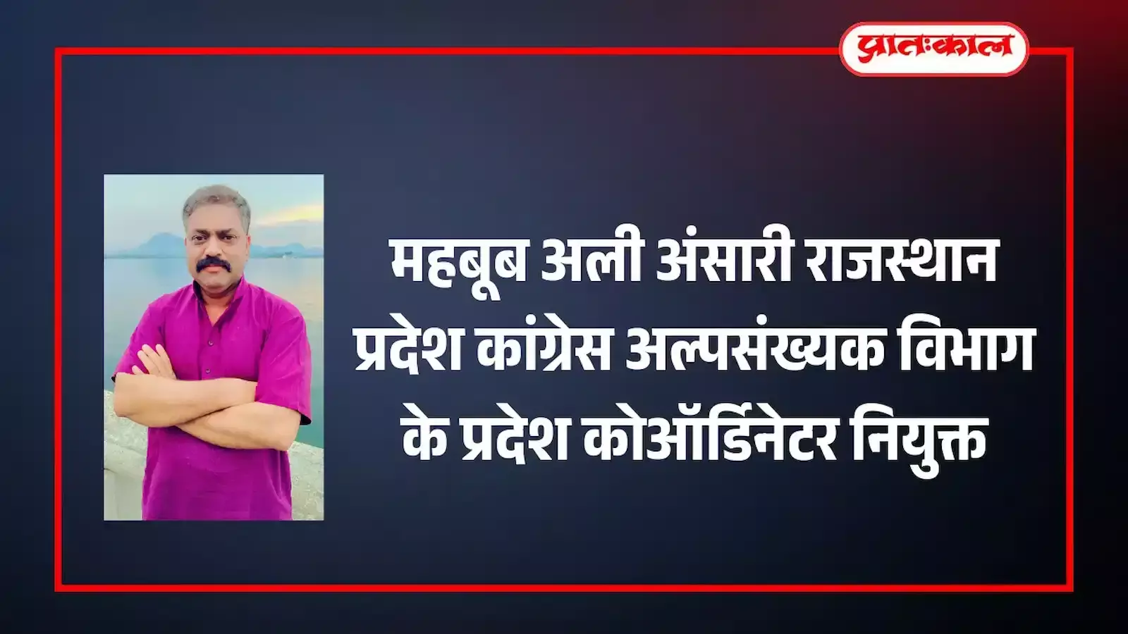 महबूब अली अंसारी राजस्थान प्रदेश कांग्रेस अल्पसंख्यक विभाग के प्रदेश कोऑर्डिनेटर नियुक्त