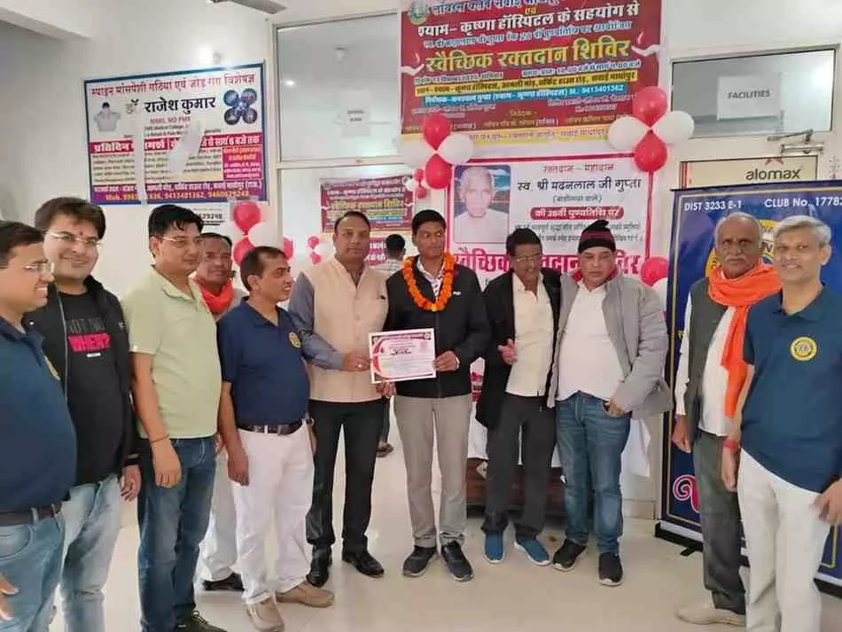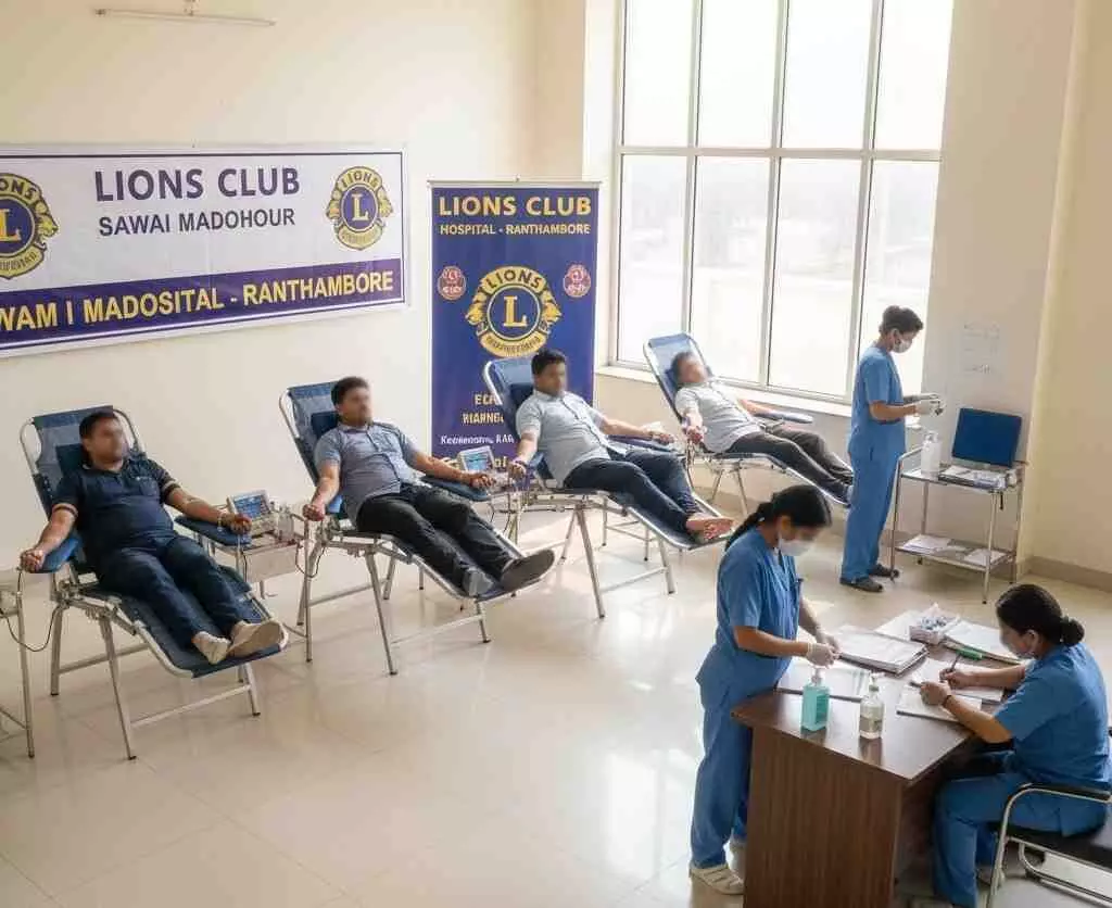 सवाई माधोपुर-रणथंबोर लायंस क्लब ने स्वर्गीय मदन लाल गुप्ता की 28वीं पुण्यतिथि पर श्याम कृष्णा हॉस्पिटल में स्वैच्छिक रक्तदान शिविर का आयोजन किया। शिविर में 51 यूनिट रक्त एकत्रित हुआ, 18 युवाओं ने पहली बार रक्तदान किया और मातृशक्तियों ने भी भाग लिया।
