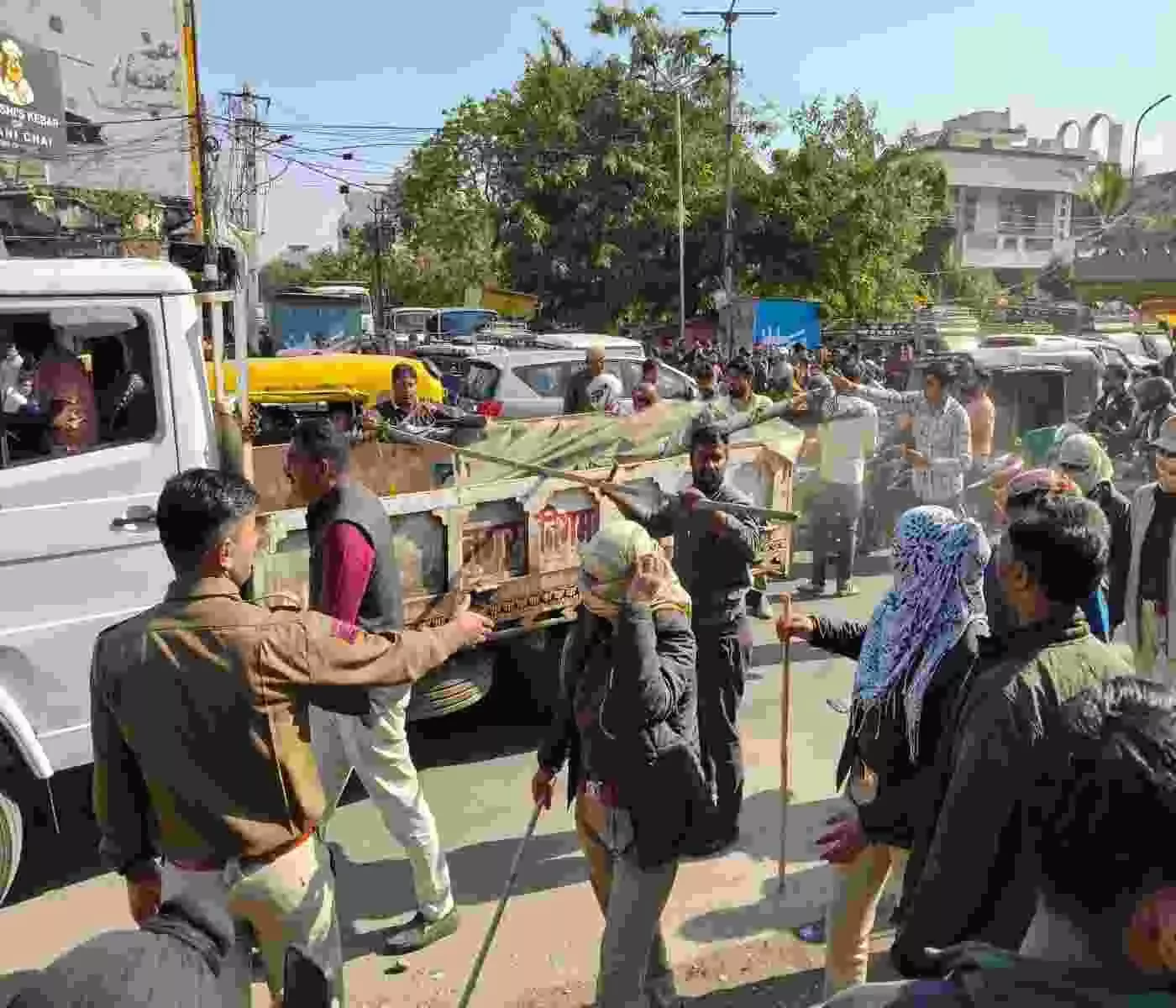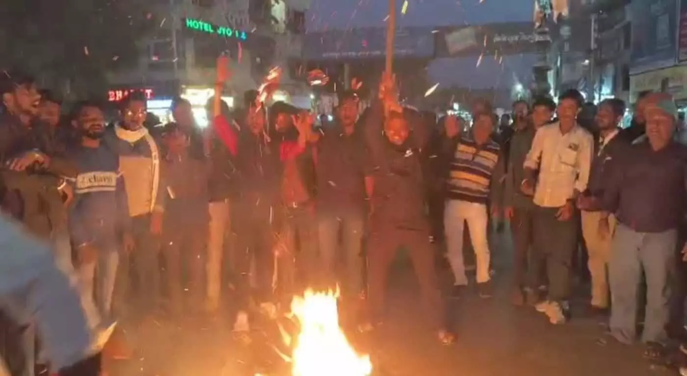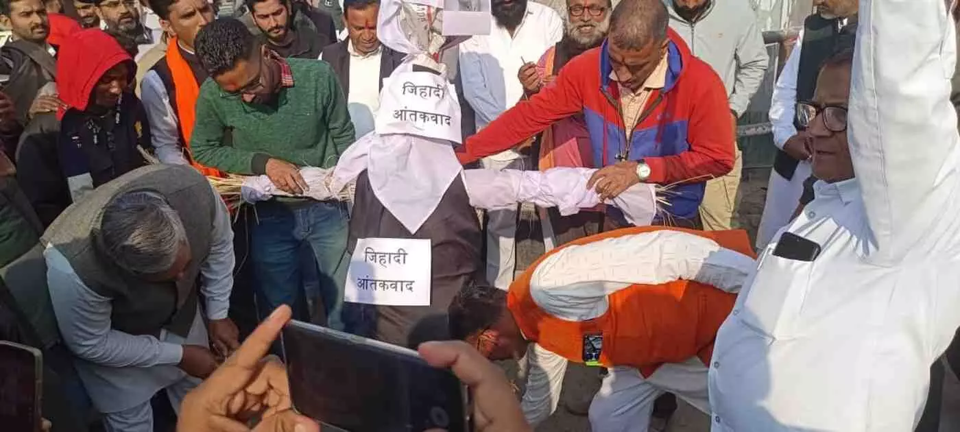 नोहर में बांग्लादेश में हिंदू पर अत्याचार की घटना के विरोध में उग्र प्रदर्शन, आतंकवाद का पुतला दहन