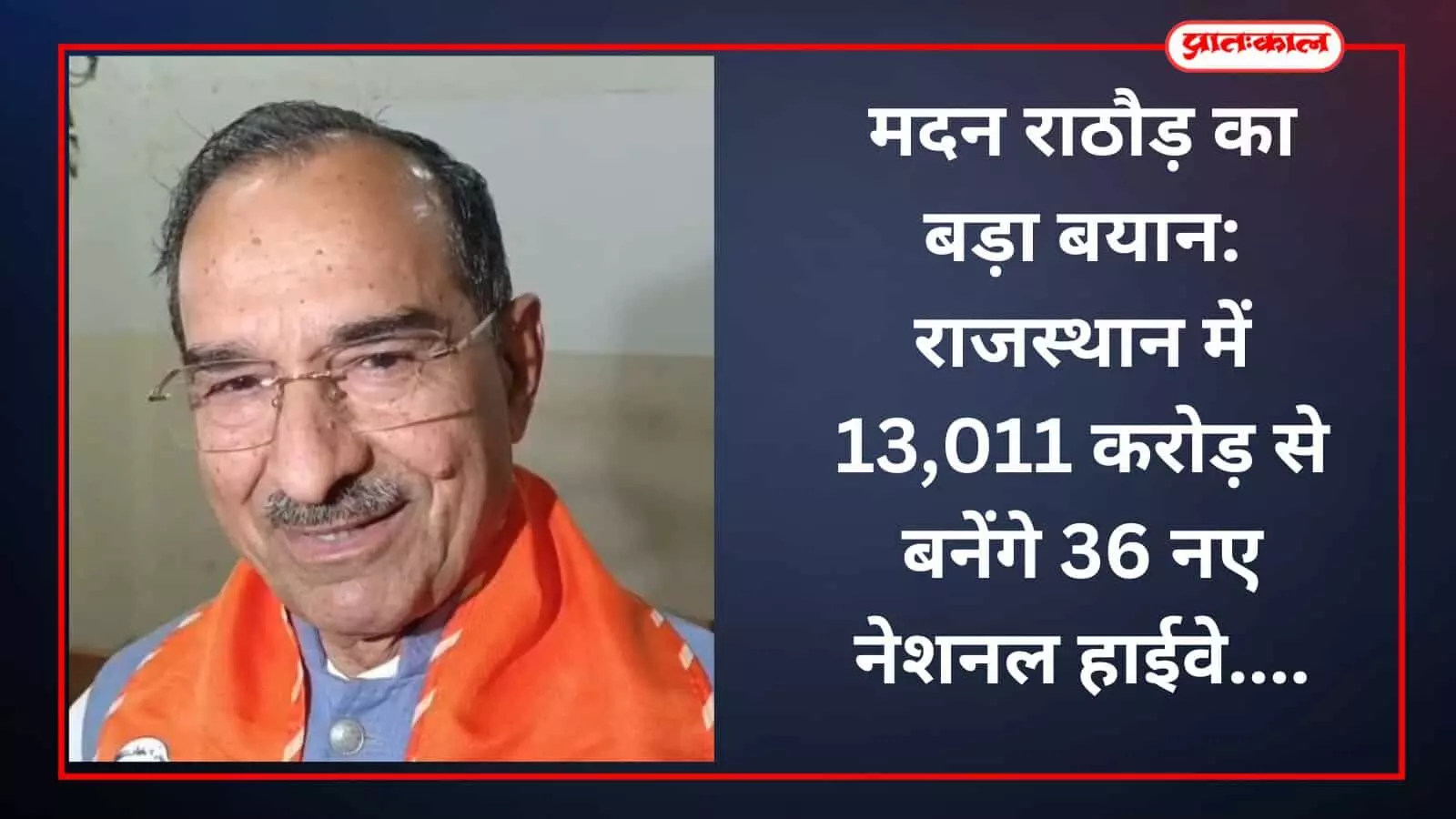 मदन राठौड़ का बड़ा बयान: राजस्थान में 13,011 करोड़ से बनेंगे 36 नए नेशनल हाईवे