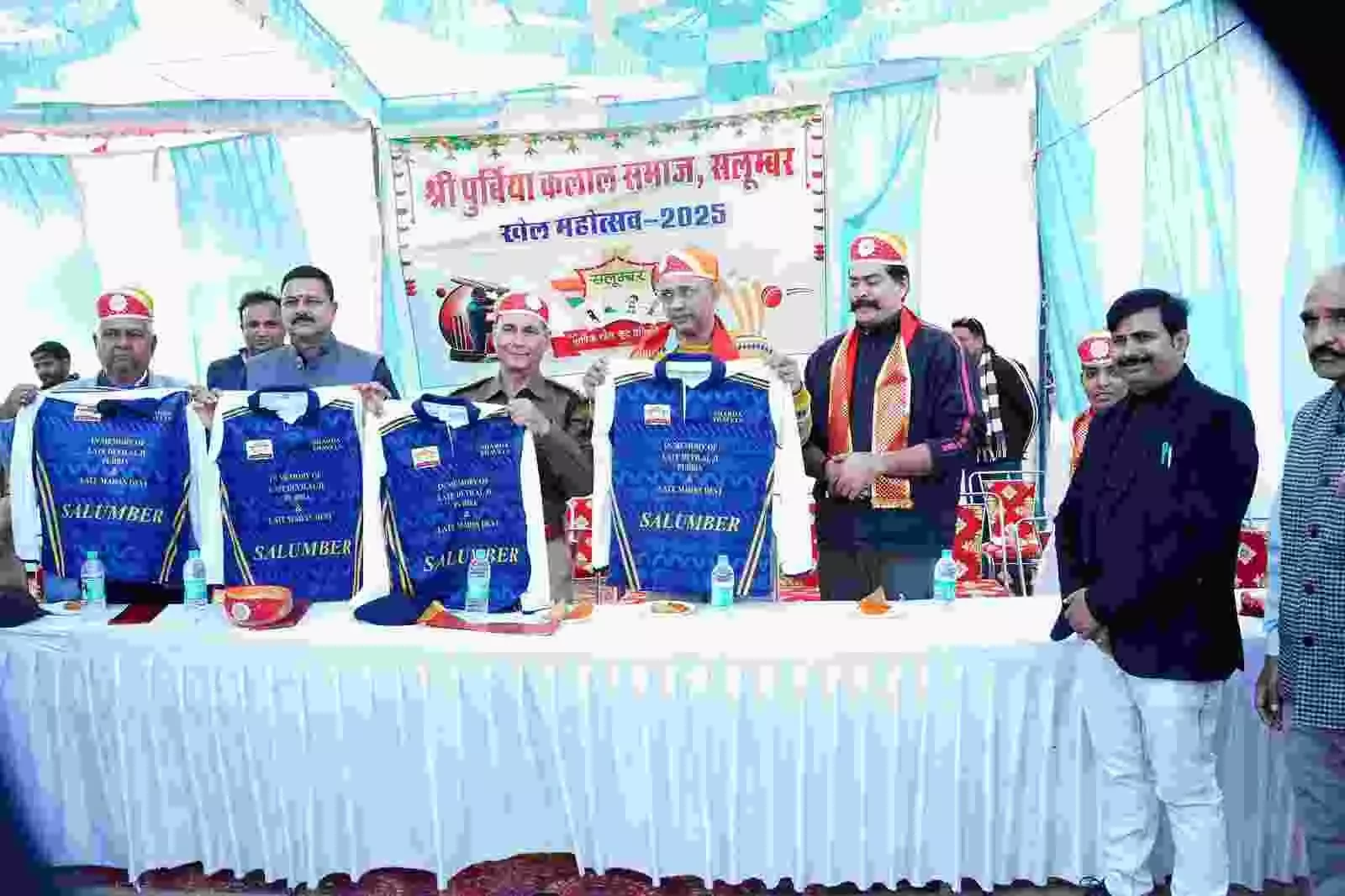 सलूम्बर में पूर्बिया कलाल समाज की 15वीं चार दिवसीय खेलकूद प्रतियोगिता का भव्य शुभारंभ हुआ। जिला कलेक्टर और पुलिस अधीक्षक की उपस्थिति में शुरू हुए इस आयोजन में मेवाड़, मालवा सहित सात क्षेत्रों से 200 से अधिक खिलाड़ी भाग ले रहे हैं, जहां क्रिकेट सहित कई खेल स्पर्धाएं आयोजित की जा रही हैं।
