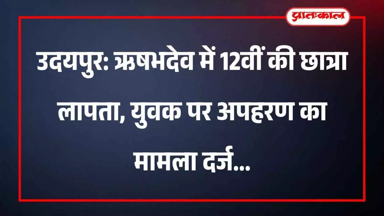 उदयपुर: ऋषभदेव में 12वीं की छात्रा लापता, युवक पर अपहरण का मामला दर्ज